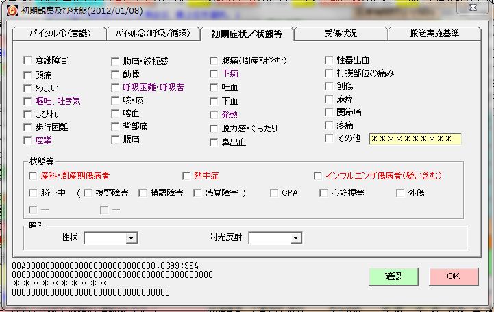 $B8F5[$N@->u!D(B(0)$B6uGr(B,(1)$B@5>o(B,(2)$B6;3T5s>eIT==J,(B,(3)$BSCLD(B ,(4)$B4YKW(B,(5)(IA*0]=D08(B,(6)$B2<3\(B,(7)$B<:D4@-(B,(8)$B$=$NB>$N0J>e8F5[(B |