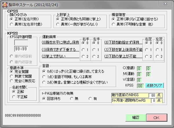 KPSS 意識水準…(0)完全覚醒 ,(1)刺激で覚醒 ,(2)完全に無反応 |