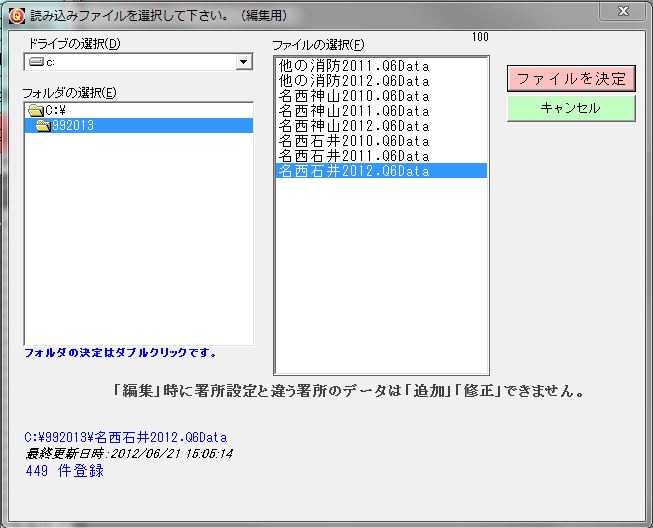 データの編集で現在表示されているデータを変更したい時に、編集画面の上部にある「データ変更」ボタンを押すとこの画面となります。