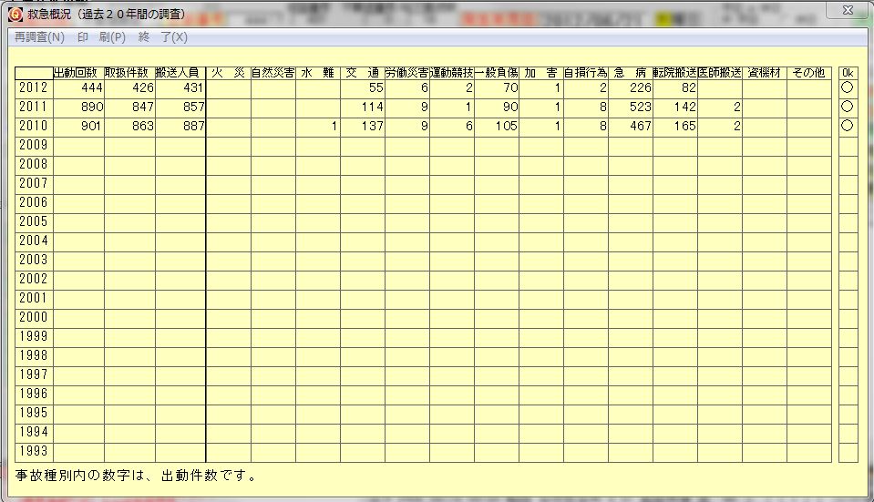 登録されているデータ過去20年分の概況を表示します。