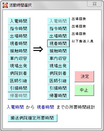 ただし、「救急隊の活動所要時間の調査」では「搬送病院確定所要時間調査」ができません。