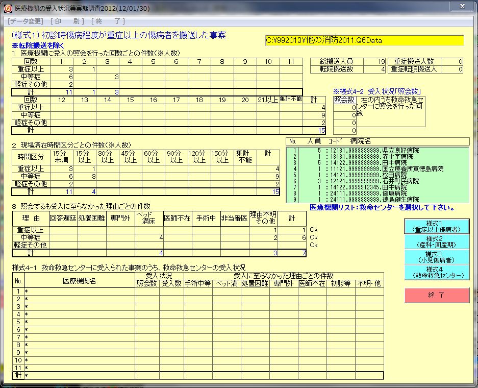 総務省及び厚生労働省から依頼のある「救急搬送における医療機関の受入状況等実態調査の実施について(2012)」 の調査用です。