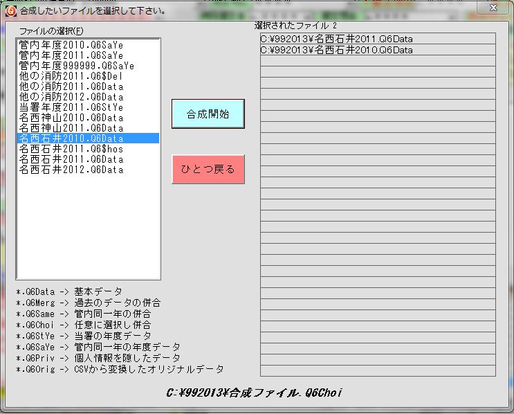 フォルダ内にあるデータを選択して「合成開始」ボタンを押すと、[合成ファイル.Q6Choi ]というファイルが出来ます。