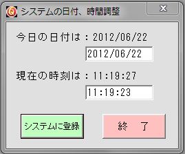 日付を[2013/01/01 ] 、時刻を[09:00:00 ]の様に入力し、「システムに登録」ボタンを押すと登録されます、